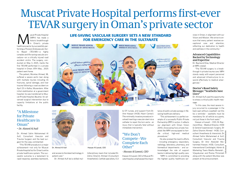 teams in delivering high-quality care. “MPH is committed to providing the highest quality healthcare services in Oman, in alignment with our Vision and Mission. We strive to ensure that every patient receives exceptional care and attention, reflecting our dedication to health and wellness in the community.”